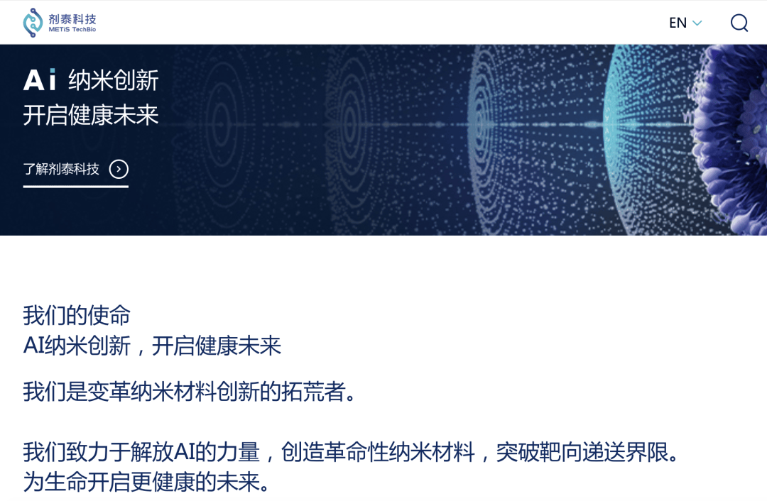 剂泰科技是一家人工智能(AI)驱动纳米材料创新的生物科技公司,专注于利用靶向药物递送和发现技术,帮助生命体战胜疾病和衰老,重获健康和活力。