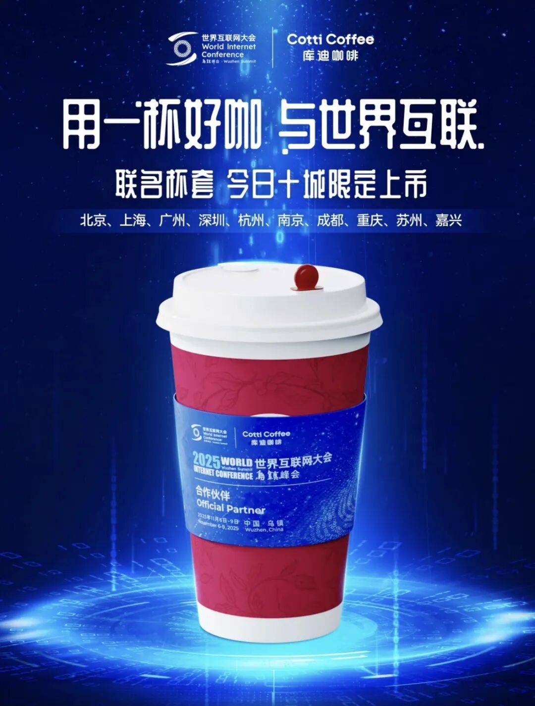 店的烘焙实验室终于开到广西了!库迪2025年世界互联网大会乌镇峰会联名杯套十城限定上市