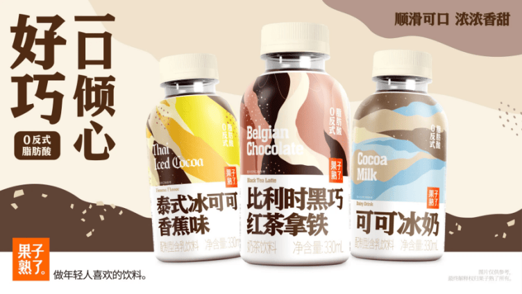 近日,果子熟了推出「可可奶」系列新品,包括泰式冰可可香蕉味、比利时黑巧红茶拿铁和可可冰奶三种口味。据官方介绍,该系列新品均不含反式脂肪酸,口感顺滑香甜,适合通勤、外出等场景。