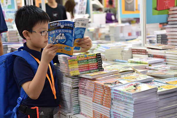 7月19日,小朋友在阅读图书。当日,第28届香港书展在香港会展中心开幕。本届书展共有37个国家及地区的约670家参展商参与。