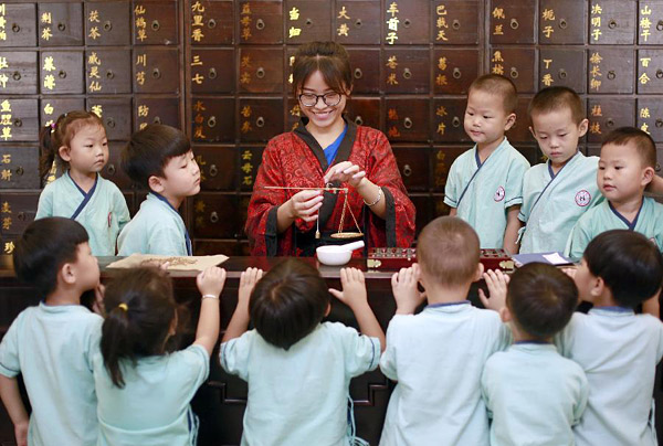 7月19日,孩子们在国学馆老师指导下学习传统中医药知识。暑假期间,河北省衡水市孙敬学堂开展“国学夏令营”活动。孩子们通过穿汉服、读国学、习礼仪等形式,感知中国传统文化,丰富暑期生活。
