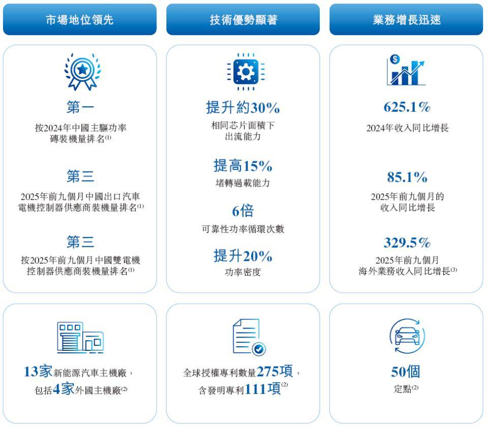 截至2025年9月30日,臻驱科技直接或通过一级供货商赢得13家主机厂的50个定点,解决方案已应用于82款车型,其中54款车型已进入量产阶段。除汽车应用外,依托相同的核心技术基础,公司已将技术拓展至新兴领域,包括电动垂直起降飞行器(eVTOL)和具身智能等。