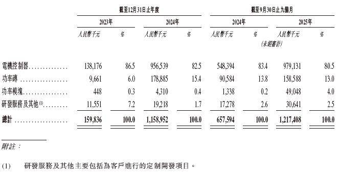 臻驱科技大部分收入来自销售电机控制器,以及来自销售功率砖、功率模块、研发服务及其他。