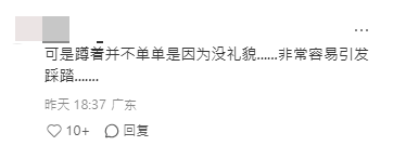 对此,有香港网友解释:「在地铁坐地上和蹲下真的很危险,虽然这个站很少人,但下一站可能突然涌上很多人,没注意到的话容易被踩到,因为人群瞬间就可以挤满车厢。」