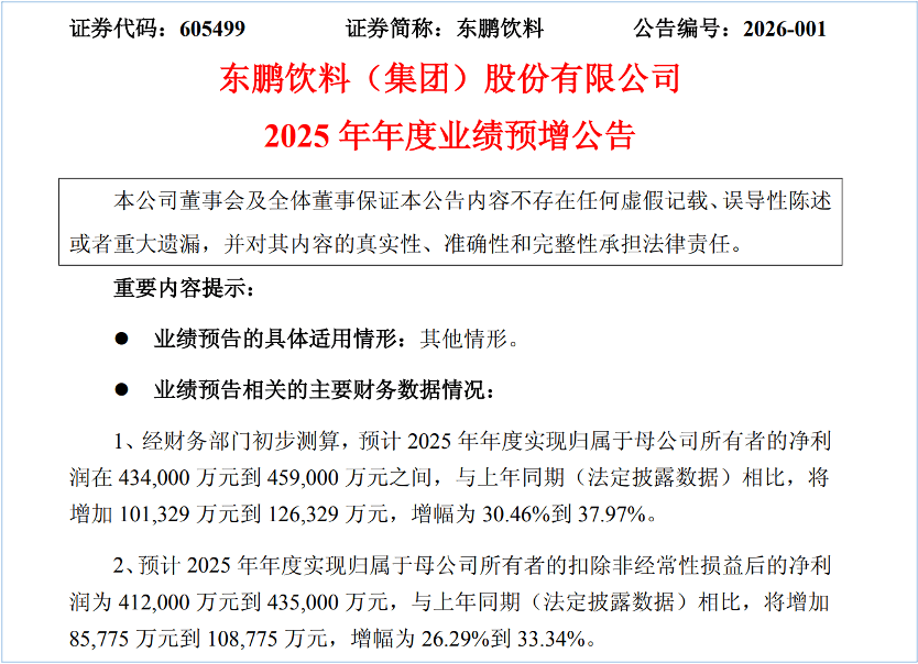 根据东鹏特饮公司业绩预告显示,2025年营收将首次突破200亿元大关,达到207.6至211.2亿元,同比增长超过31%;净利润也有望达到43.4至45.9亿元,同比增幅超过30%。即便是体量已如此庞大,其2025年前三季度仍实现了营收168.44亿元、净利润37.61亿元,同比分别增长34.13%和38.91%的亮眼数据,连续多年保持高速增长。