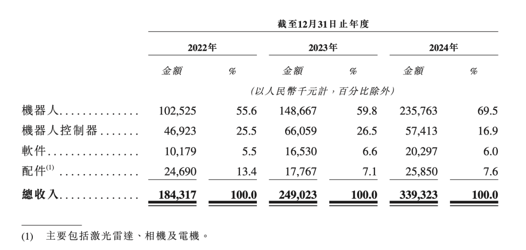根据招股书,仙工智能的核心技术能力大致分为AGI(通用人工智能)技术、机器人控制技术、定位和导航技术、机器视觉技术、功能安全技术、电子电路设计以及软件系统架构七个技术集群,内部研发团队致力于拓展控制器、机器人和软件的可用功能和用例,以满足不同行业的特定需求。公司收入主要来自集成了SRC系列机器人控制器的机器人的销售,而在整个往绩记录期间,机器人销售的绝对金额和占总收入的比例都呈现持续增长趋势;还有很大一部分收入来自机器人控制器及配件的销售。